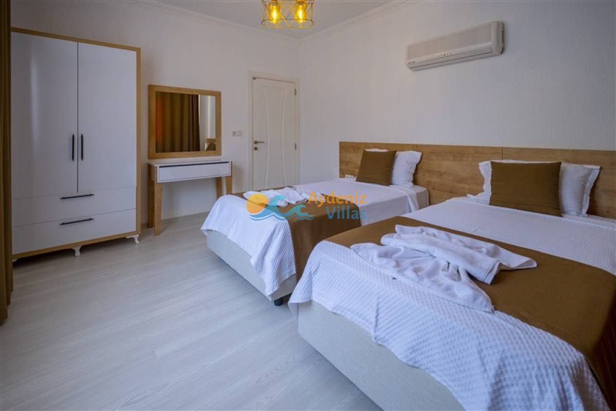 3. Yatak Odası: Suit odadır. İki adet tek kişilik yatak, klima, komodin, elbise dolabı, ebeveyn banyo-wc si bulunmaktadır.