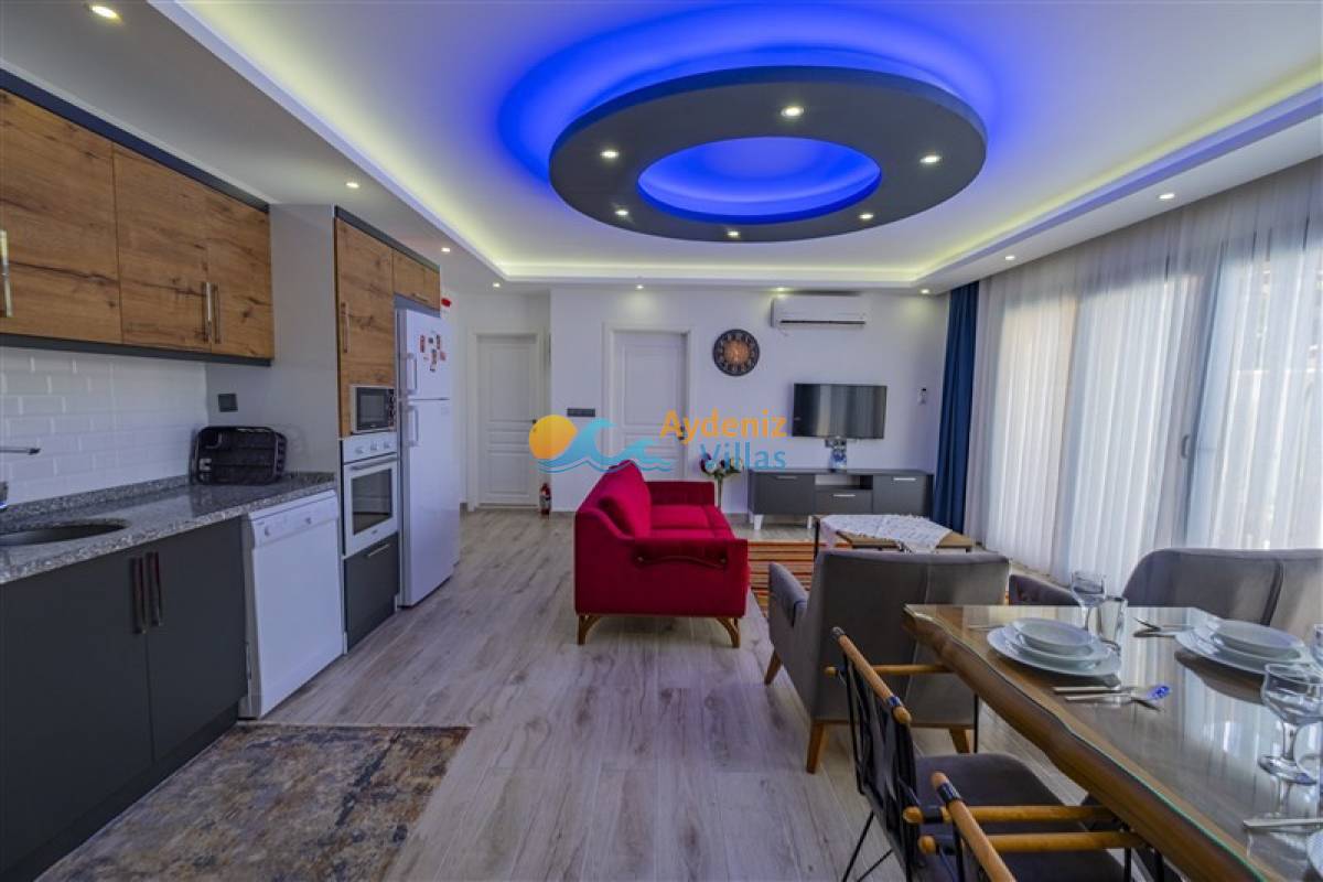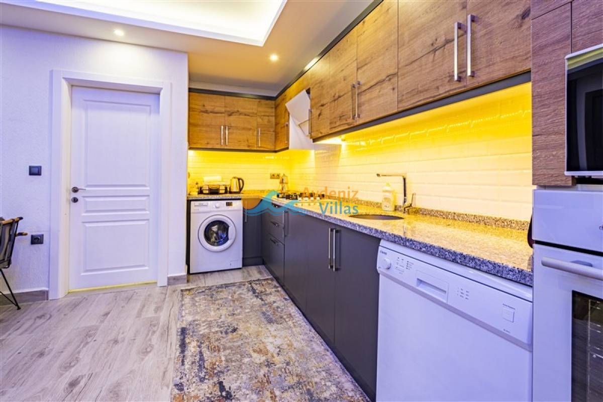Lüks ve geniş bir mutfağa sahiptir. Buzdolabı, bulaşık makinası, çamaşır makinesi, fırın, 4´lü ocak, kettle, 4 kişilik yemek takımı, tava, tencereler, çatal, bıçak vb. mutfağımız da misafirlerimiz için her şey düşünülmüştür. Ayrıca tatil süresince herhangi bir eksik olduğunda bizlere ilettiğiniz takdirde en kısa sürede tedarik edilmektedir.