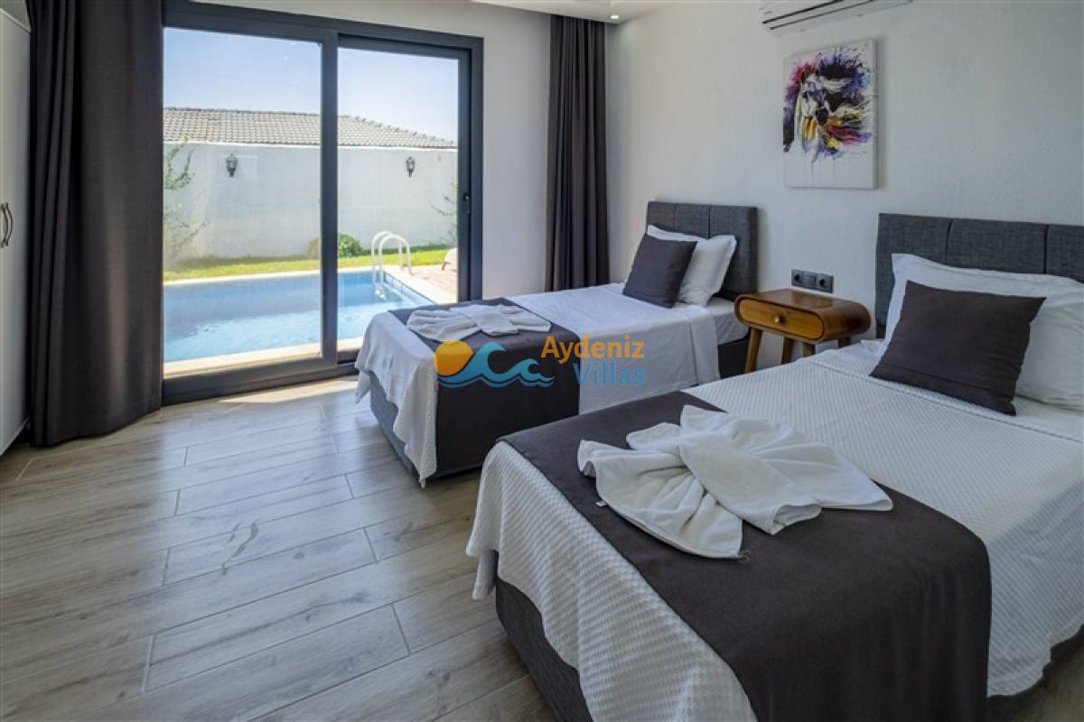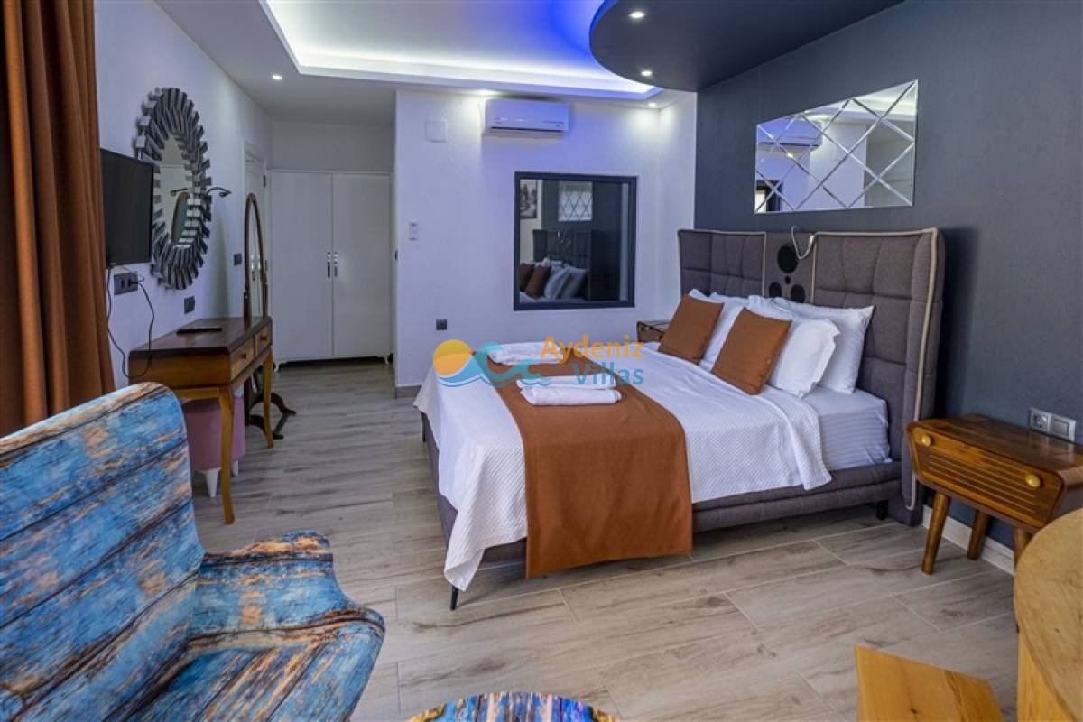 2. Yatak Odası: Suit odadır. İki adet tek kişilik yatak, klima, komodin, elbise dolabı, ebeveyn banyo-wc si bulunmaktadır.