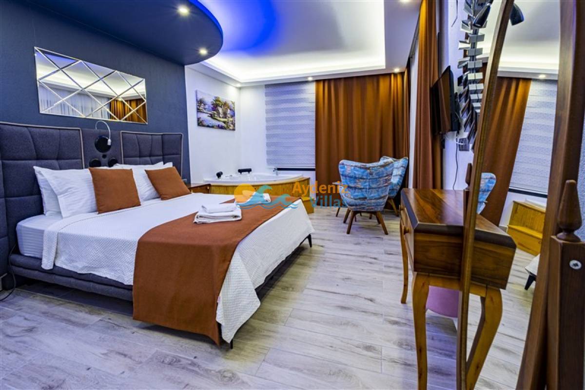 1. Yatak Odası: Suit odadır. Bir adet çift kişilik yatak, komodin, elbise dolabı, klima, ebeveyn banyo-wc si ve jakuzi bulunmaktadır.